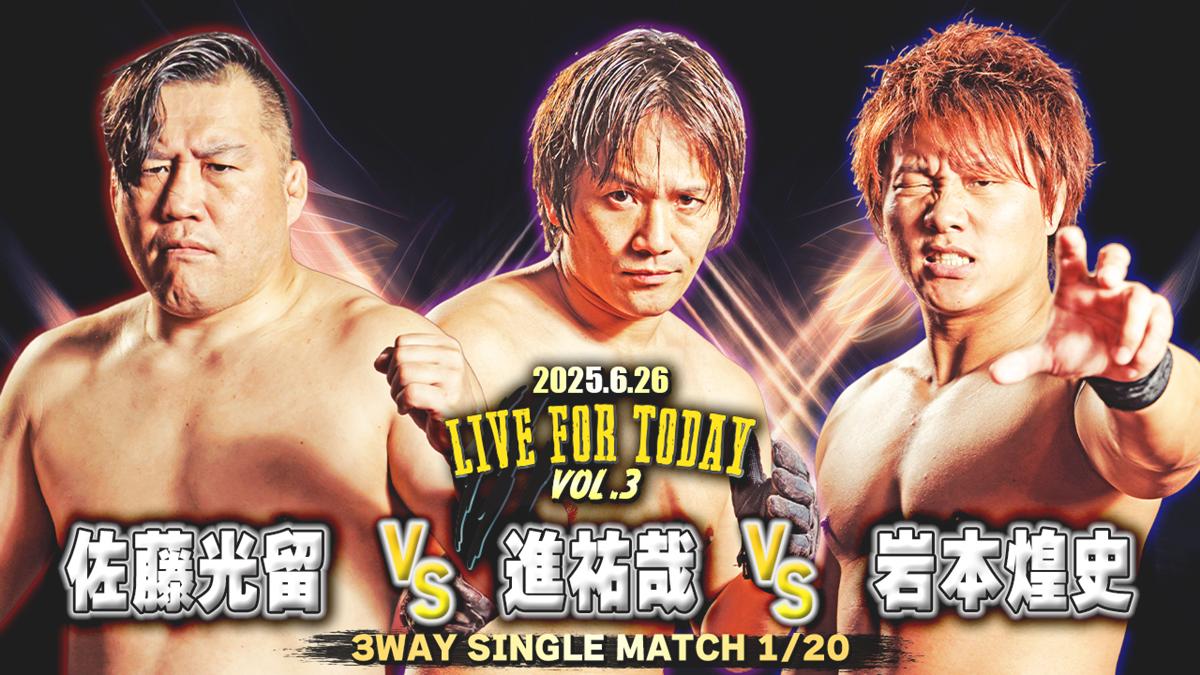 もう一つの3WAYには、ユーモアと技巧を兼ね備える佐藤光留、元IJシングル王者の進祐哉、そして現IJシングル王者の岩本煌史が名を連ねた。王者・岩本がどのような形で自らの存在感を示すのかも見どころの一つである。