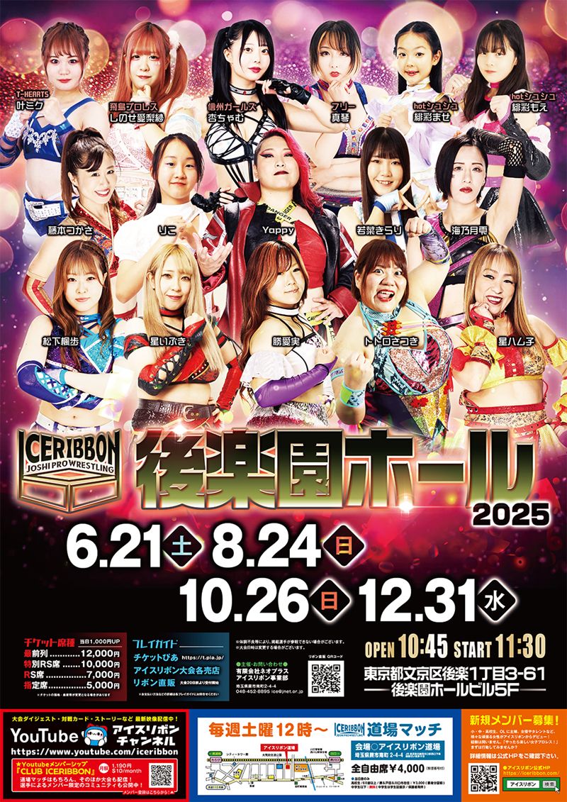 6月21日(土)午前11時30分から、後楽園ホールで繰り広げられるアイスリボン「雨のち、リボン2025」。梅雨空を吹き飛ばすような熱い闘いに注目だ!