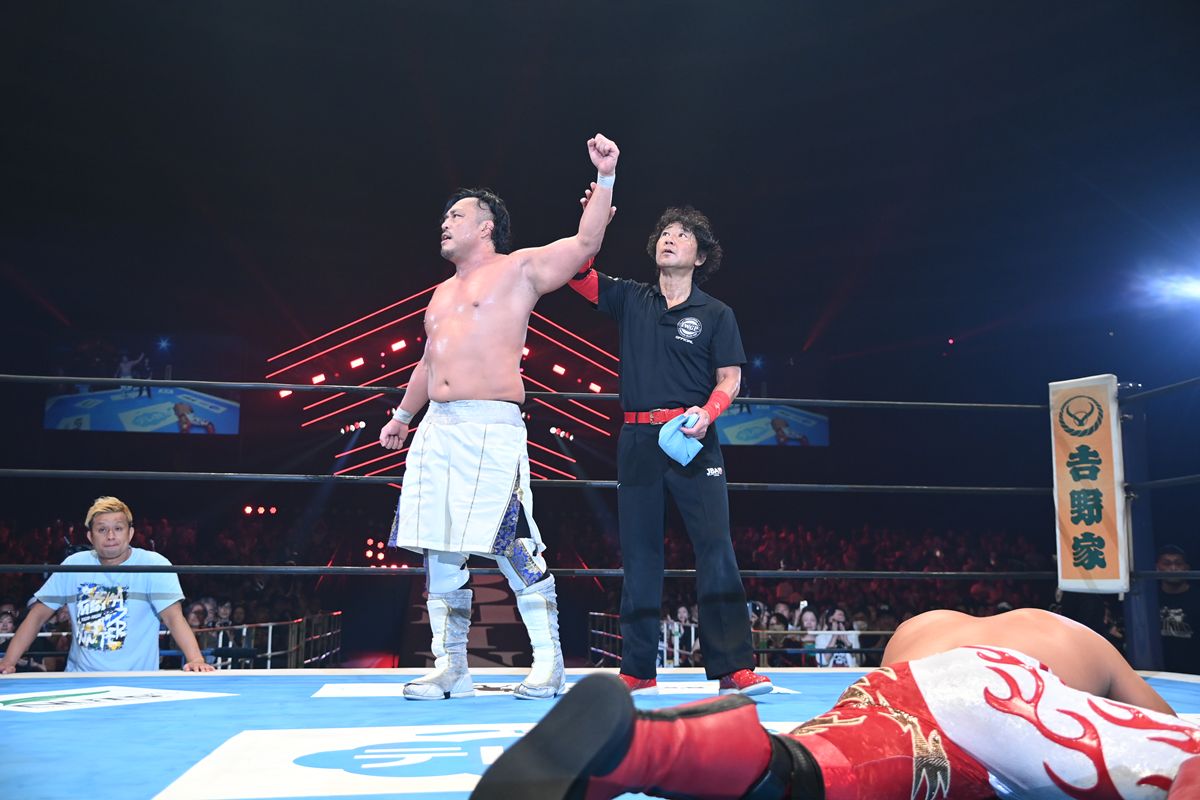 メインイベントではIWGP世界ヘビー級選手権試合が行われ、王者・後藤洋央紀が挑戦者・鷹木信悟を退け、7度目の防衛に成功。王者としての意地と進化を、リング上で証明した。