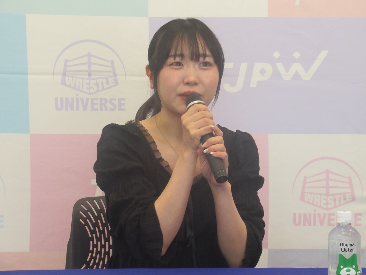 王者と同じ「1998年度組」の宮本は6・7品川大会での6人タッグ戦で鈴芽を直接撃破して、挑戦をアピールし、王座戦が決まった。