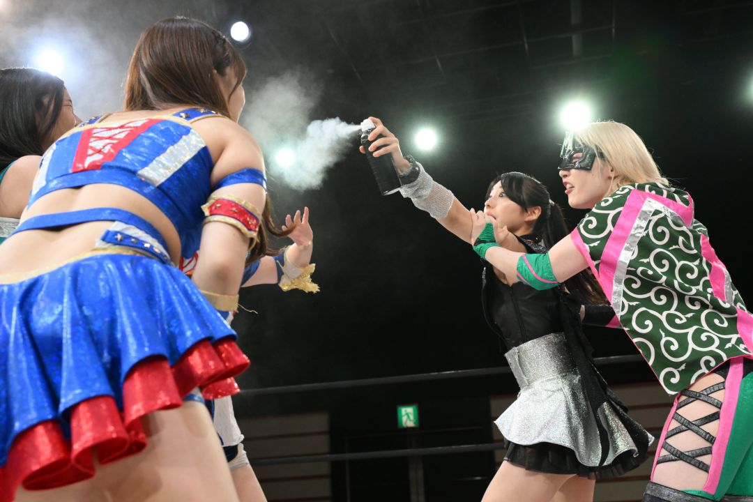 東京女子プロレスは6月22日、両国KFCホールで『TJPW SPRING TOUR 2025 FINAL』を開催。メインイベントにて8人タッグマッチを行い、瑞希&ハイパーミサヲ&愛野ユキ&原宿ぽむと荒井優希&桐生真弥&HIMAWARI&風城ハルが激突した。