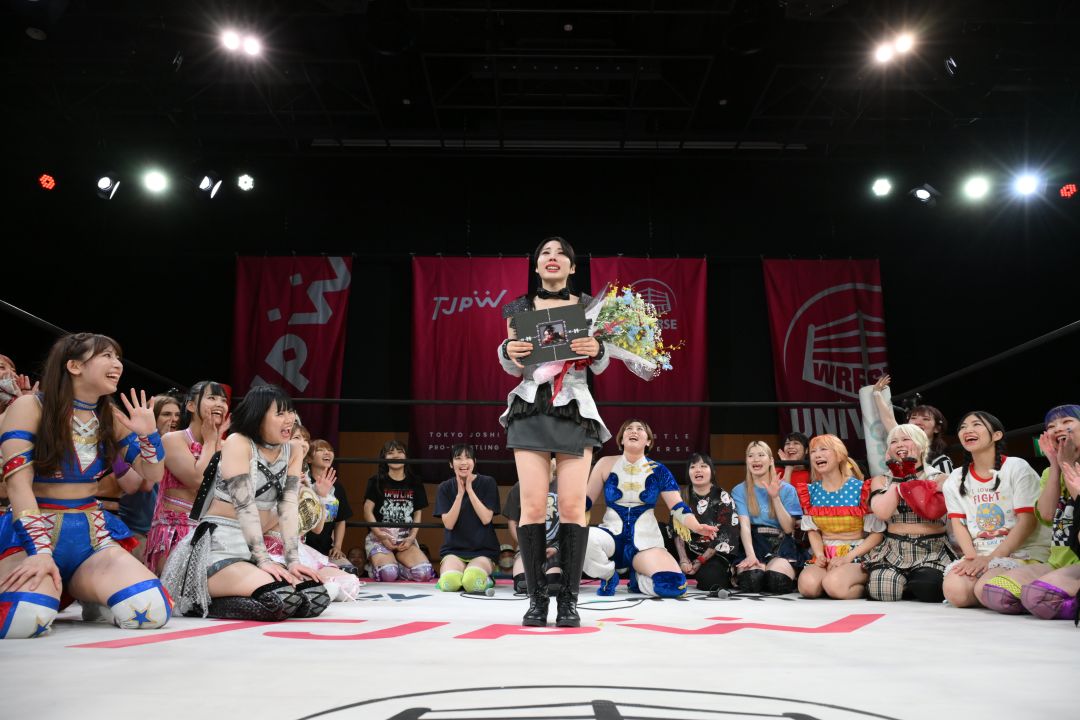 勝利後、ぽむがマイクを握り「ぽむはいつもばっちがぽむをすごい楽しそうに見てくれたり、励ましてくれたり、自信をすごい持たせてくれて。こうやってぽむのプロレスのスタイルをばっちがたくさん自信をつけさせてくれたと思うので、今日ばっちの最後のコールをしてもらえて、ばっちの前で勝ててホントに嬉しいです」と涙ながらに感謝を伝えた。