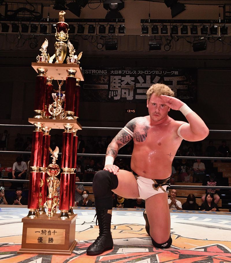 【大日本】レイトン・バザードが大門寺崇との激闘を制し“一騎当千”初制覇!橋本大地はストロング王座初防衛/伊東&星野がタッグ新王者に