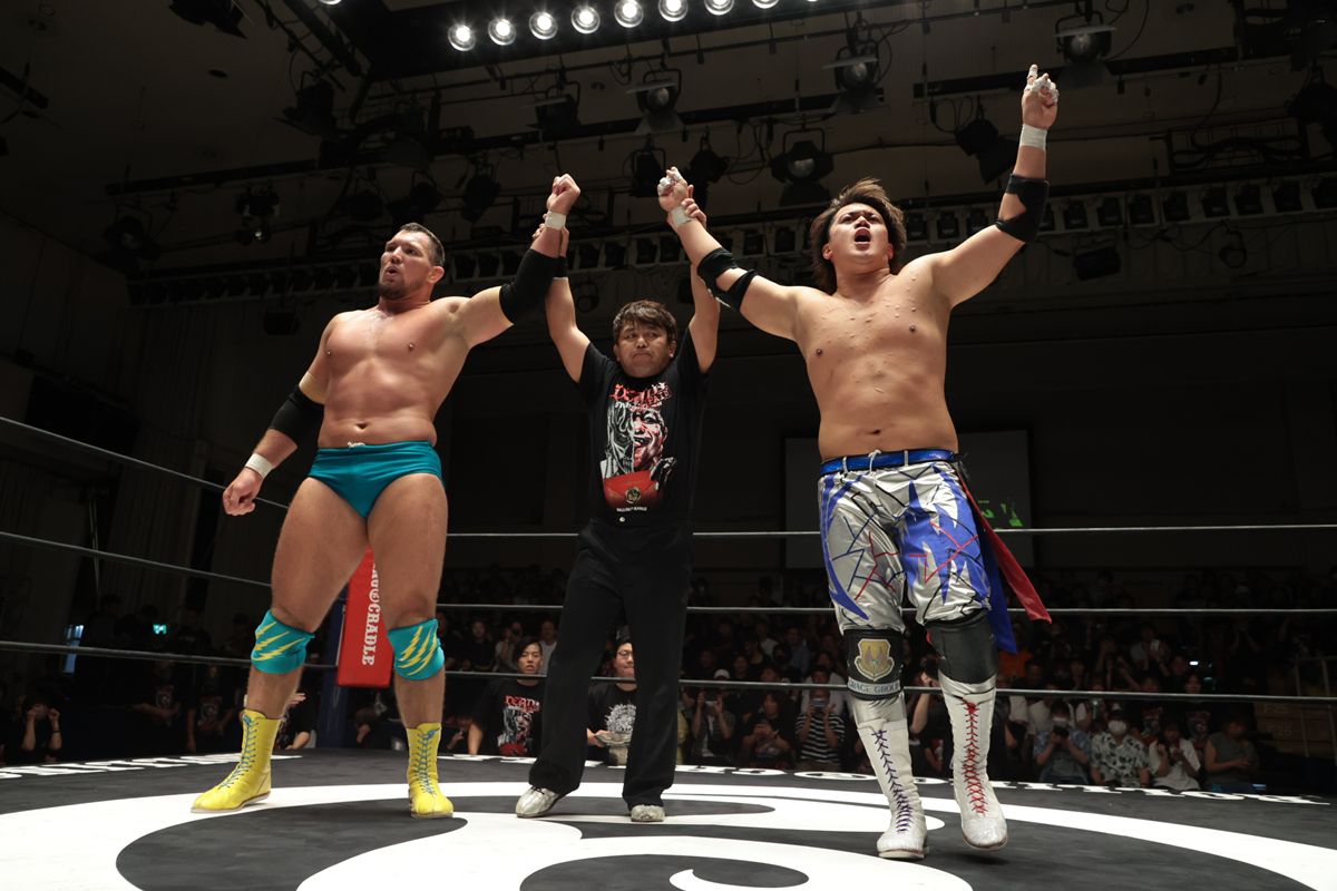 異色の王者タッグが見せた迫力、そして対戦相手の矜持と闘志。団体の垣根を超えたこの一戦は、それぞれのリングでの活躍が交差し合う瞬間であり、未来への新たな火種でもあった。