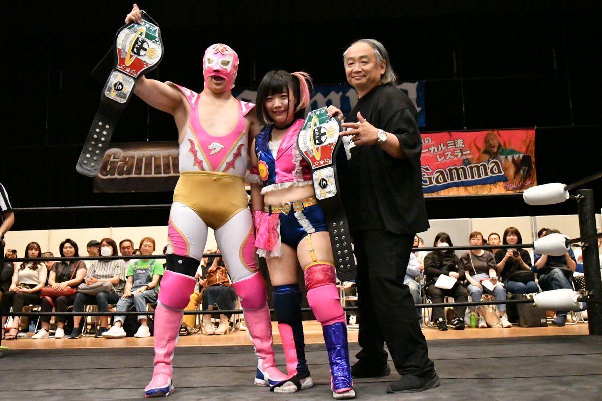 【Gamma自主興行】プロデューサー自ら激闘&締めの勝利!デルフィン&花園桃花がタッグ王座防衛