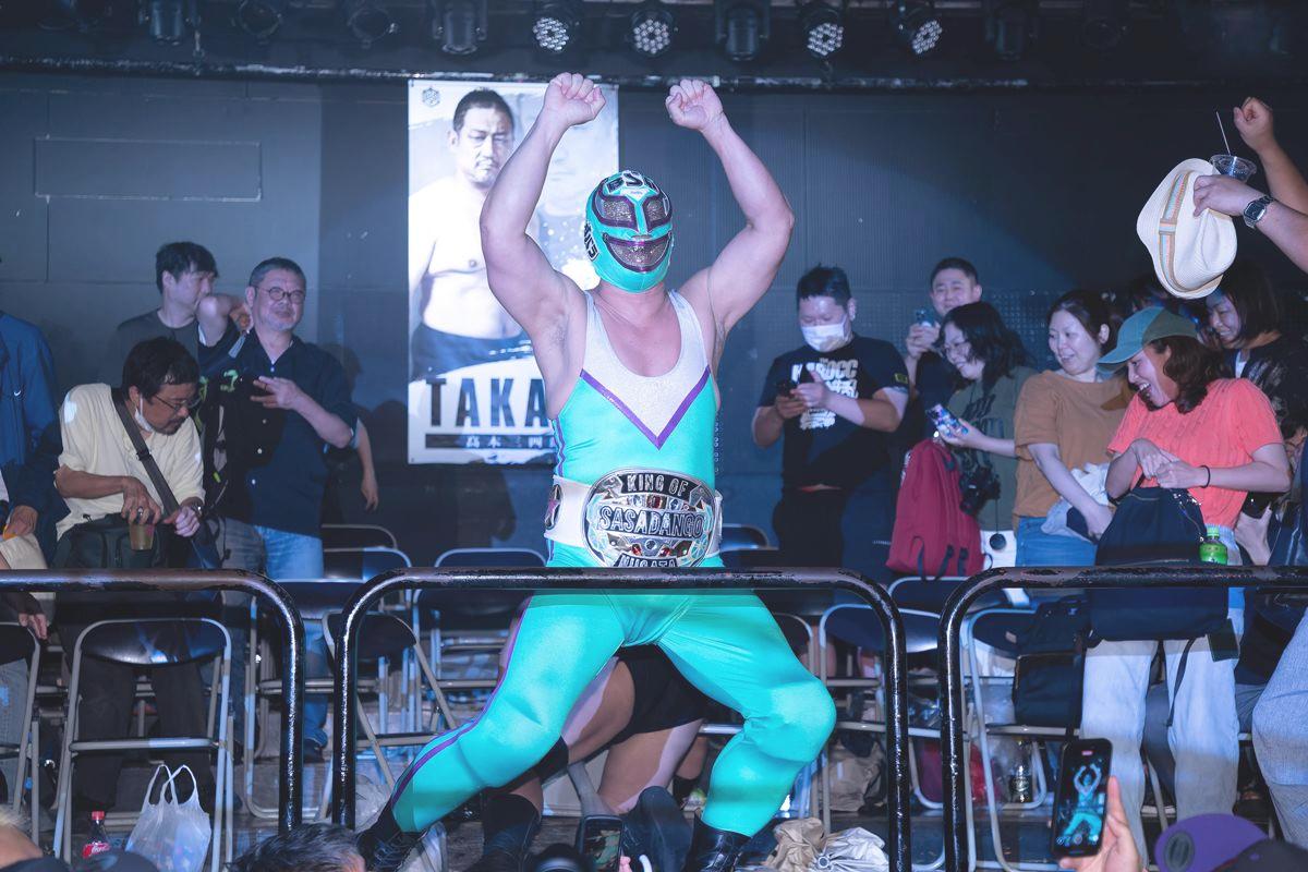 「M&Aプロレス」でなければ、まず実現しないであろう異次元マッチとなったこの一戦。先に入場してマイクを持った坂井は「皆さまにお別れのごあいさつがあります。私、マッスル坂井だなんていって、たまにリングに上がらせていただいてますが、ふだんはスーパー・ササダンゴ・マシンで…。マスクマンが正体を明かすときは引退か死んだときなんです。6月9日、新日本との“一面対抗戦”という伝説に残る一大事業を成功させて。その週末(15日)に新潟でEXTREMEのタイトルマッチを無理やり組まれ、ベルトをはく奪され、今日マスクまで剥がされた状態でリングに上がらされ、相手が諏訪魔ですよ。髙木三四郎が昔ちょっと顔が似てるというだけで組んだ、おふざけカードです。でも、俺は今日小細工なし。手ぶらでやってまいりました。身一つで戦うしかない。スーパーヘビー級対決。私のすべてを諏訪魔にぶつけます」と珍しく戦闘モード。
