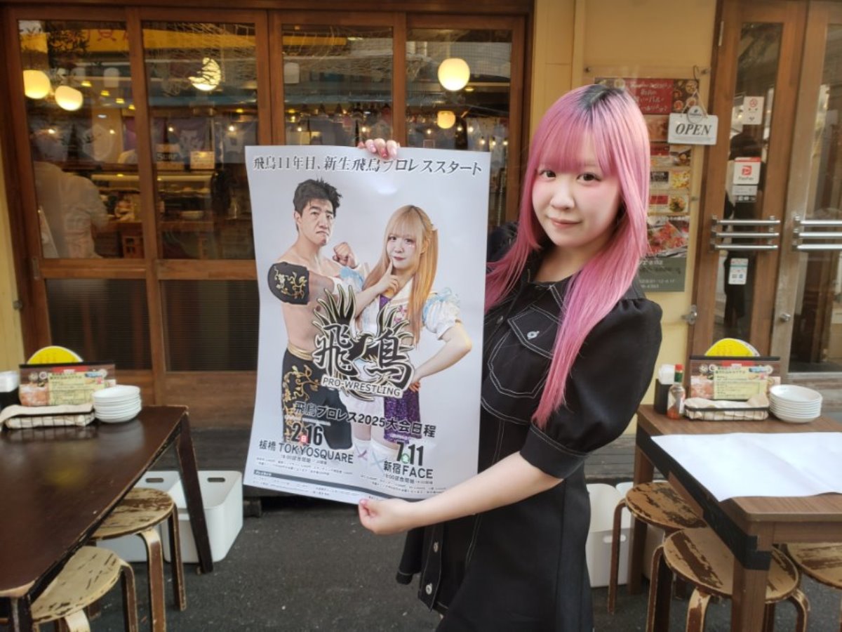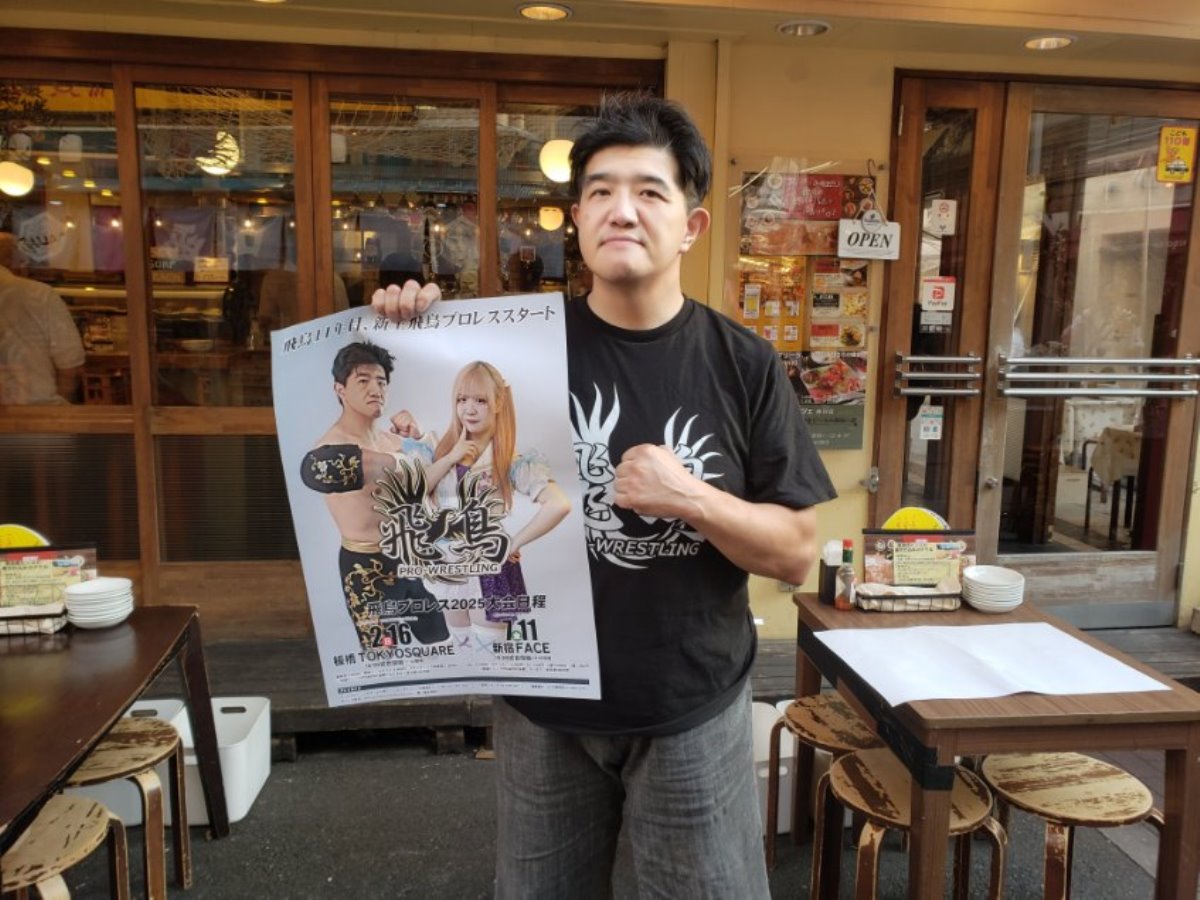 また、篠瀬代表は7・11新宿に向け、「ホントは10周年も新宿FACEでやりたかったんですけど、日程が取れなくて、2年ぶりになりました。飛鳥は娘が入って転換期になり、僕のカラーは薄れていくと思います。今までと違う、新生飛鳥らしい大会を見せたいと思います」とコメントした。