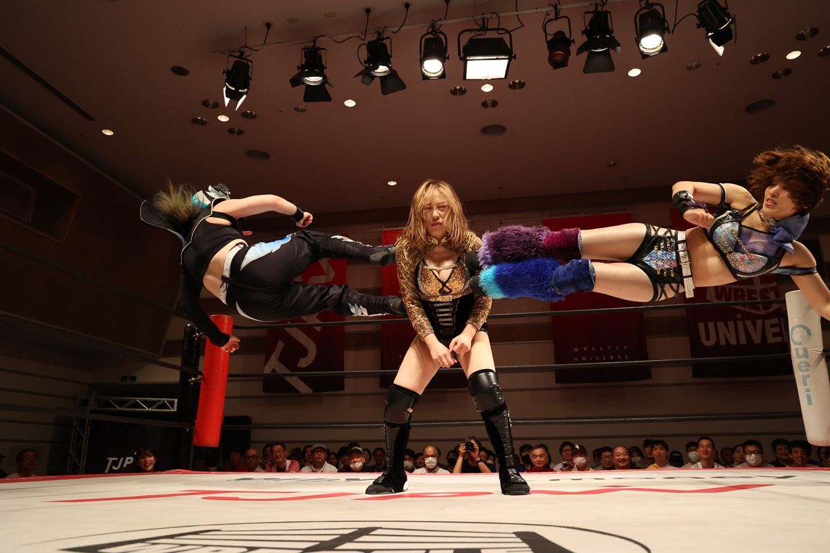 また、夏のシングルトーナメント「第12回東京プリンセスカップ」(7・27新宿FACEで開幕)の最終予選で、上原わかながバナナ・ピローで鈴木志乃を、風城ハルがフィッシャーマンズ・スープレックス・ホールドでアイビー・スティールを破り、本戦への出場を決めた。