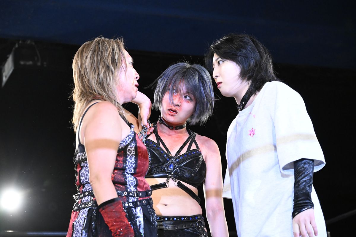 ※8月17日後楽園ホール大会における、【王者】安納サオリ vs 【挑戦者】尾崎魔弓 vs 【挑戦者】翔の無差別級選手権3WAYマッチが決定