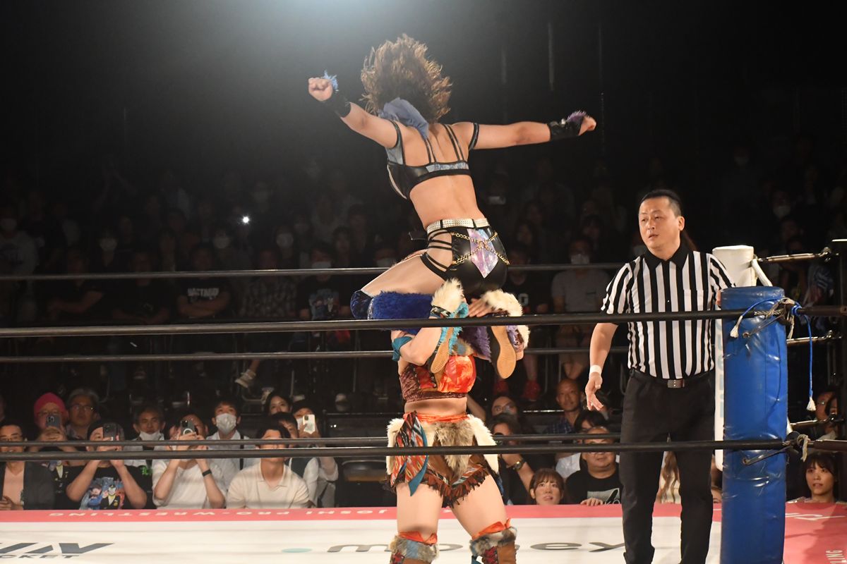 27人という大人数を相手にした特別試合の中では、途中、鳥喰かやが救援に登場。長谷川は「私は東京女子ではトリッピーが正規のパートナーだって勝手に言ってて感じてたので、最後に助けに来て、一緒に交われたことはすごく幸せだなって思いました」と感慨深げに語った。