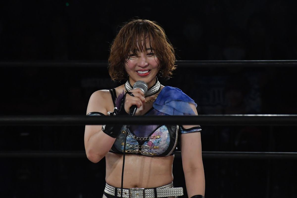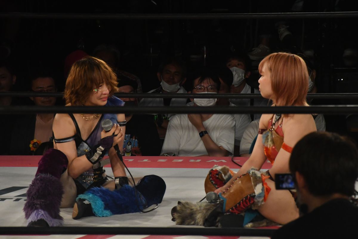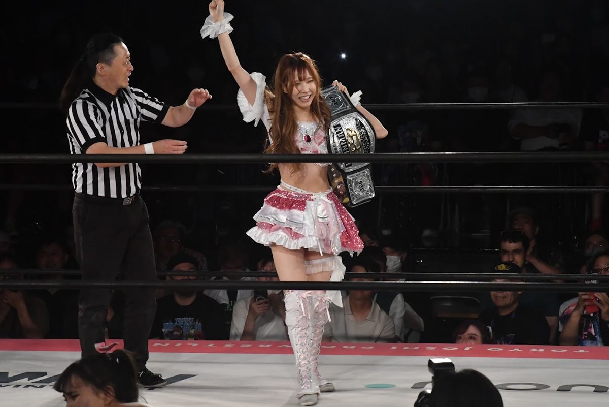「2019年にデビューして約6年弱。首を骨折したり様々なことがありましたが、今こうしてリングに立てていることに感謝します。ベルトは取られちゃったけど、もっともっと大切なものを東京女子プロレスでもらいました」
