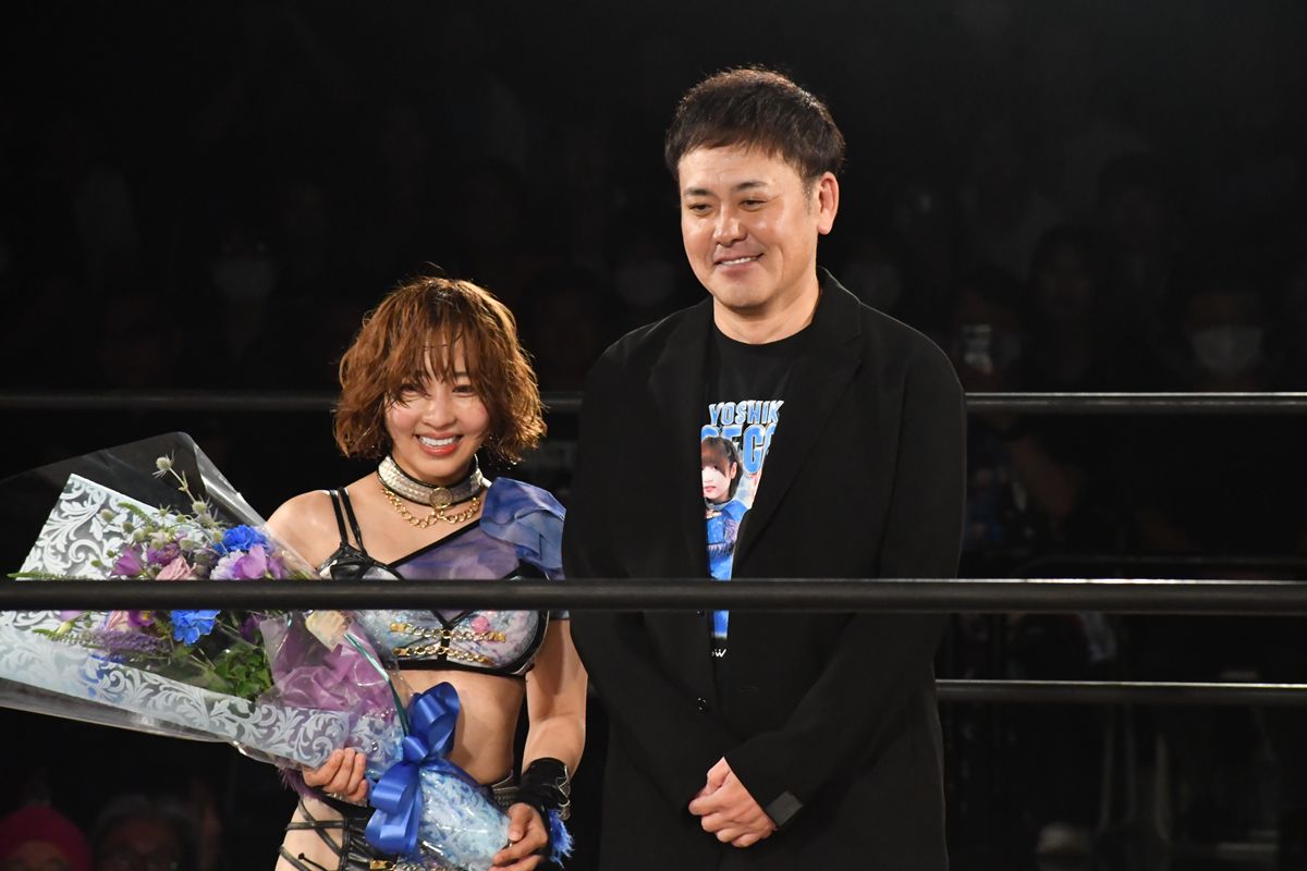 バックステージに現れると、長谷川は「本当にたくさんの人に支えられた最高のプロレス人生を送れました。最後に全員の気持ちとぶつかり合えたので、悔いはないです」と話し、「今後も何か新たに挑戦したいことが次々と出てくるんじゃないかなと思って楽しみです」と前を向いた。