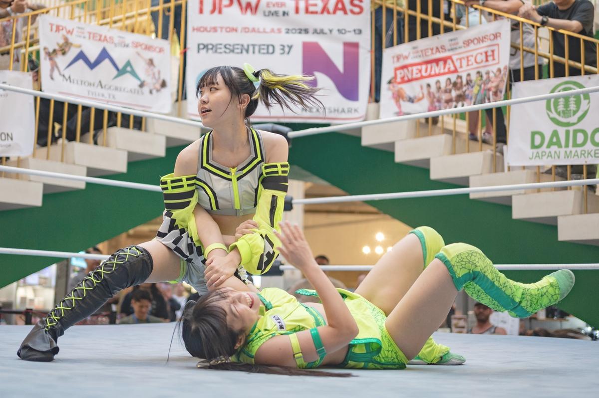 東京女子プロレスが7月10日(日本時間11日)、米テキサス州ヒューストン・POSTでテキサスツアー第1戦「TJPW LIVE in Houston NIGHT1 Presented by NextShark & Queri」を開催した。夏のビッグマッチ「SUMMER SUN PRINCESS ’25」(21日、東京・大田区総合体育館)でV6戦に臨むインターナショナル・プリンセス王者・鈴芽が宮本もかとのタッグマッチでの前哨戦で快勝し、王座防衛に弾みをつけた。