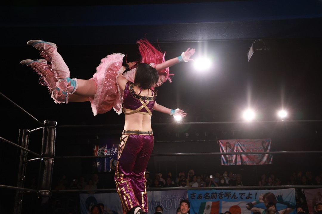 〇しのせ愛梨紗、本間多恵(18分59秒、片エビ固め)真琴、紫雷美央●