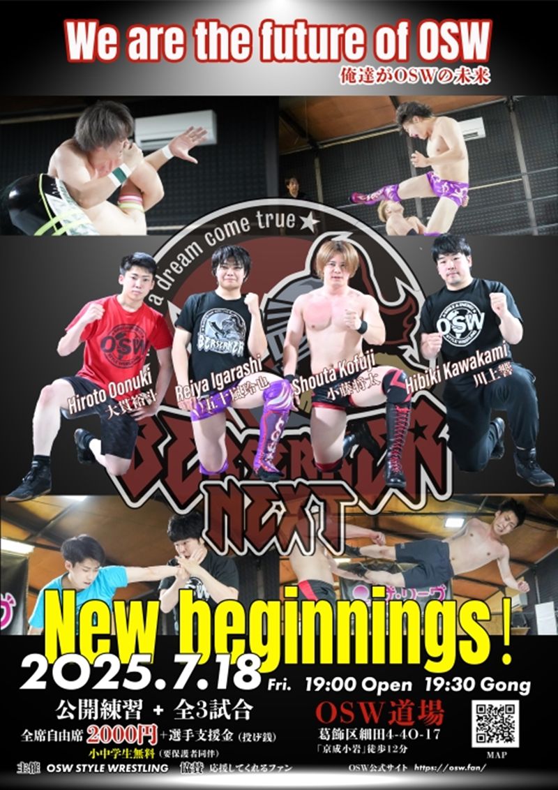 OSWの未来を担う若手たちが熱くぶつかり合うイベント『BERSERKER NEXT vol.12』が、7月18日(金)に東京・葛飾のOSW道場で開催される。開場は19時、試合開始は19時30分。