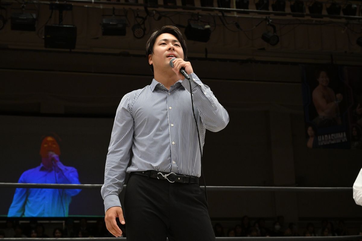 また、昨年5月より、頚椎捻挫のため欠場していた瑠希也が復帰することが決定した。瑠希也は「約1年半、欠場していたんですが、8月17日、大阪大会で復帰することが決まりました。若い世代が頑張ってるのを見て、悔しい思いをしたので、ここから皆さんに追いつき追い越せるよう、そしてトップにいけるよう、一から頑張っていきますので、皆さん応援よろしくお願いします」と意気込んだ。