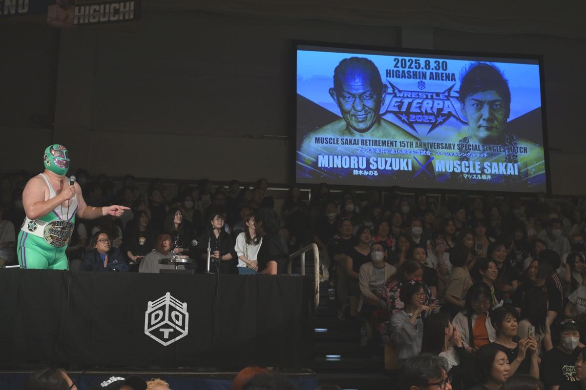 DDTプロレスが7月13日、東京・後楽園ホールで「ROCK IN RING 2025 〜奏でろ打撃、叫べ歓声〜」を開催した。男色ディーノが8・31後楽園で棚橋弘至と禁断の一騎打ちに臨むことが決定。マッスル坂井は8・30東京・ひがしんアリーナ(墨田区総合体育館)での「引退15周年記念試合」で鈴木みのるとシングルマッチを行うことも決まった。