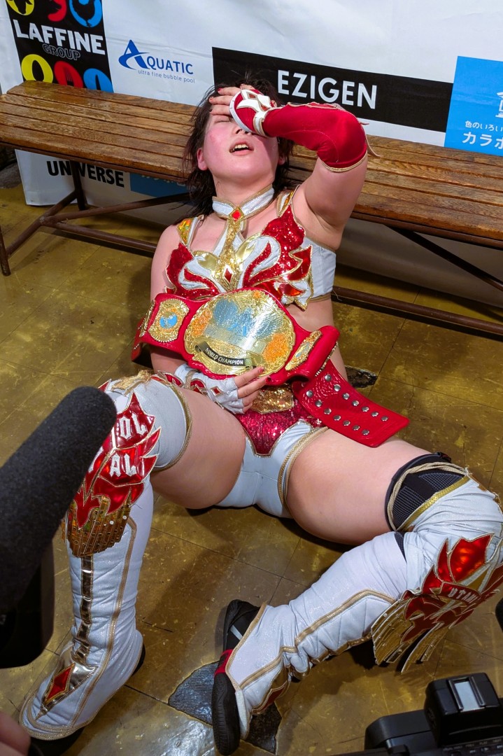 対する彩羽もセコンドの桃野に支えられながら姿を見せ「林下詩美、全然勝てない。深紅のベルトさ、絶対諦めないから。前回は負けたけどさ、今回は引き分け。次は絶対勝つ」と、林下詩美への雪辱と赤いベルトへの強いこだわりを示した。