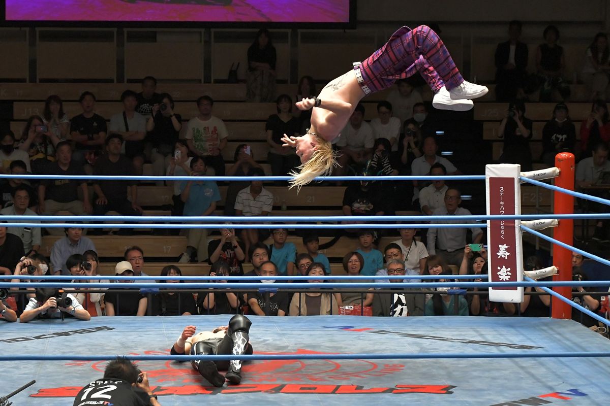 吉岡の動きが一瞬止まった隙を逃さず、HAYATOはロープ最上段から飛び込むシド・ヴィシャスを完璧に決め、3カウントを奪取した。