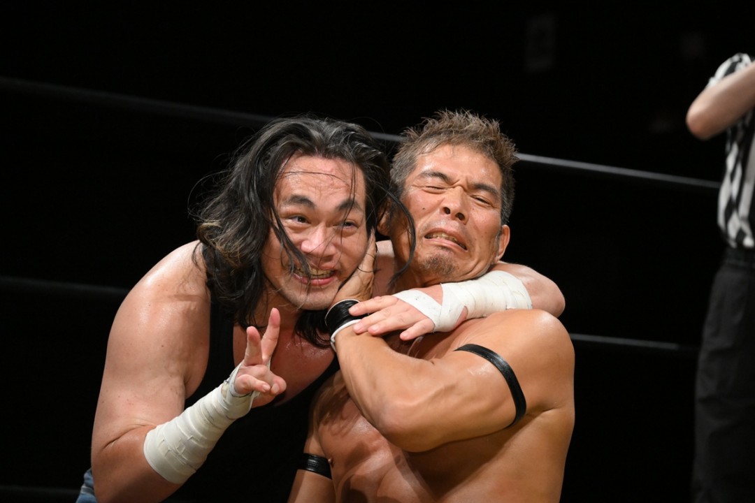 〇勝村周一朗&和田拓也(11分40秒、体固め)石井慧介●&レザー・フェース
