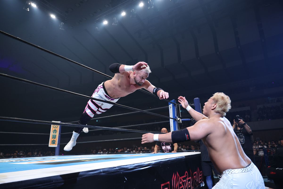 Bブロック公式戦で行われた海野翔太とエル・ファンタズモによる本隊同門対決は、互いのリスペクトを根底にした、魂を削り合う壮絶な一戦となった。友情を超えた激闘の末、海野がファンタズモを下し、G1制覇へ向け大きな一歩を踏み出した。