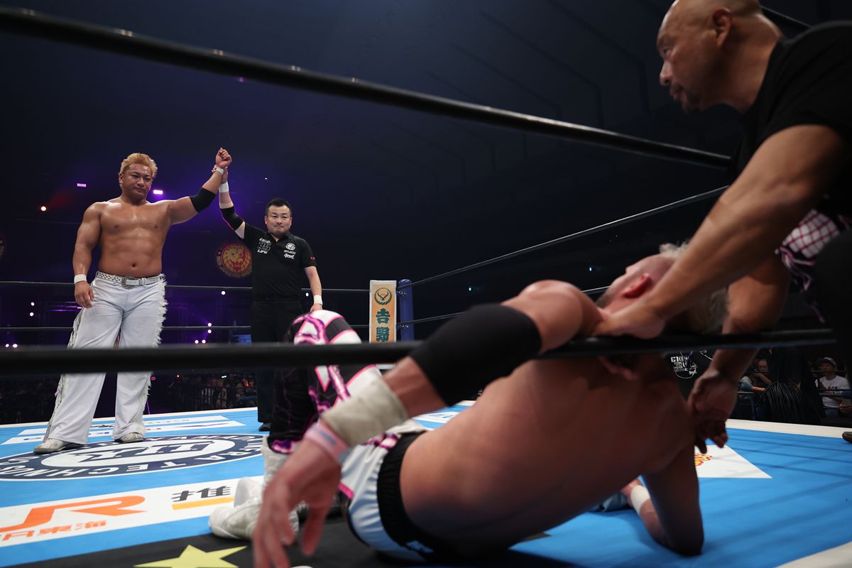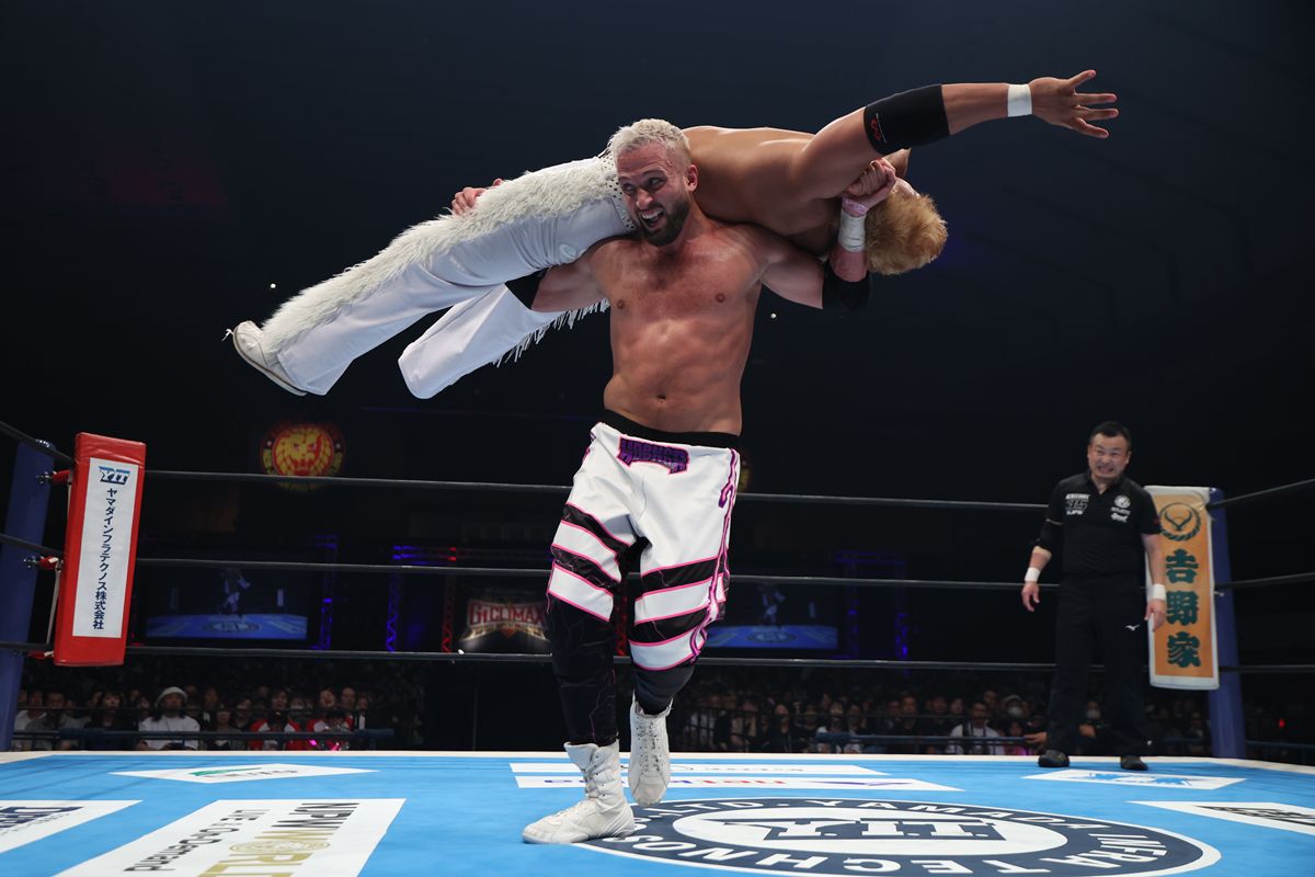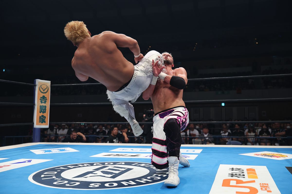 NJPW WORLD認定TV王者であるファンタズモと、新世代の旗手として期待を背負う海野。普段は共闘する仲間同士が、真夏の最強を決める舞台で対峙した。序盤はクリーンなレスリングや、ファンタズモ流のユーモアを交えた攻防が展開され、両者の間にある確かな信頼関係が垣間見えた。