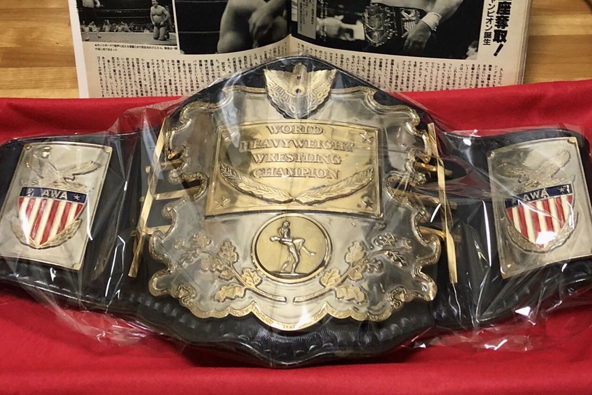 ※マサ斎藤が巻いたAWA世界ヘビー級ベルト<写真提供:柴田惣一>
