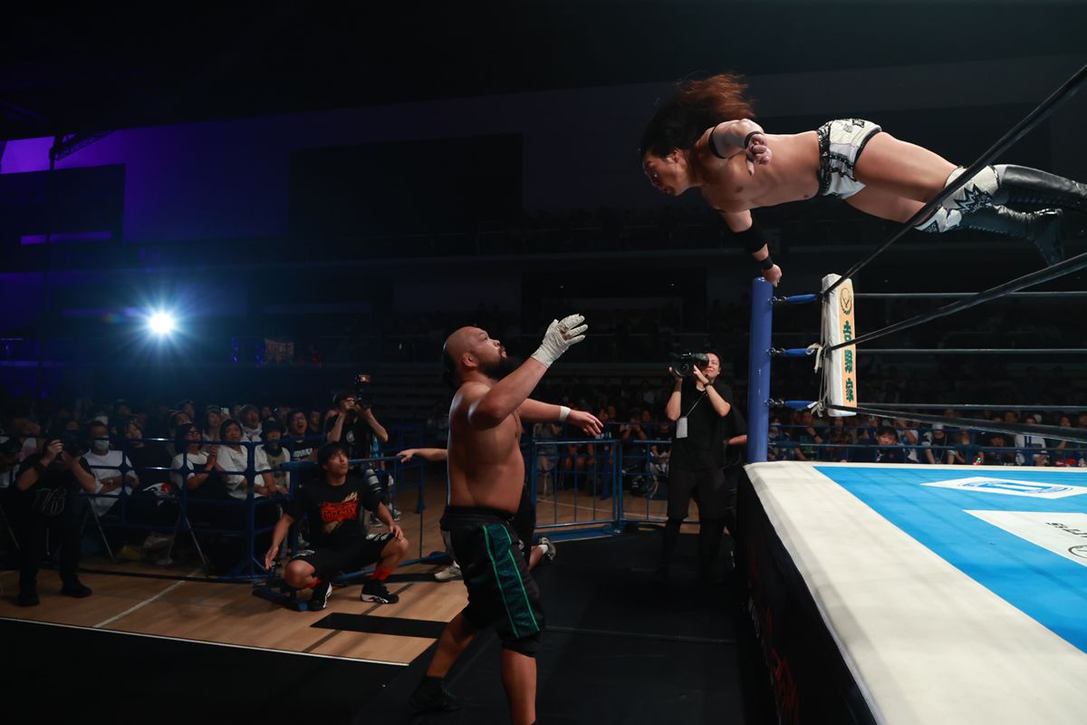 セミファイナルのBブロック公式戦で、グレート-O-カーンとKONOSUKE TAKESHITAによる注目の初シングル対決が実現。互いにシンパシーを感じながらも、リング上では非情なまでの潰し合いを展開する壮絶な名勝負の末、TAKESHITAが勝利を収めた。