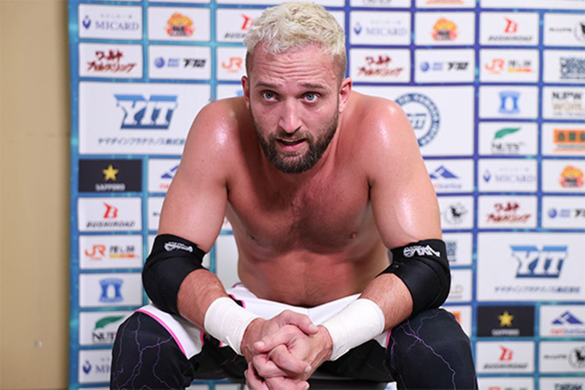 「次はそう、お前だ、ザック・セイバーJr.。『G1』で一番楽しみにしている試合だ。大田区で、俺とザックが新日本プロレスのマットで初めて闘うんだ。三文字の名前の男同士が一対一で闘うんだ。ナリタ、お前はばっちい、ばっちい、くっさい犬のウンコ以下の野郎だ。こんちくしょうめ。だが、まあいい。世界に見せつけてやろうぜ、俺たちが最高だってことをな、ザック」と、IWGP世界ヘビー級王者とのシングル対決へ向け、気持ちを切り替えた。