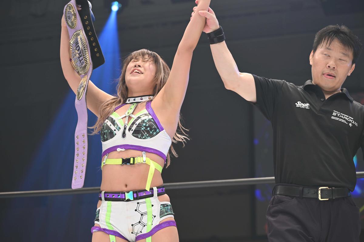 【スターダム】AZMがボジラを真っ向勝負で撃破し、STRONG女子王座初V!「赤や白やIWGPのベルトより盛り上げていく」