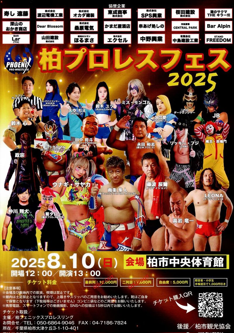 フェニックスプロレスリングの南条隼人代表は、8月10日(日)に柏市中央体育館で「柏プロレスフェス2025」を開催することを発表した。