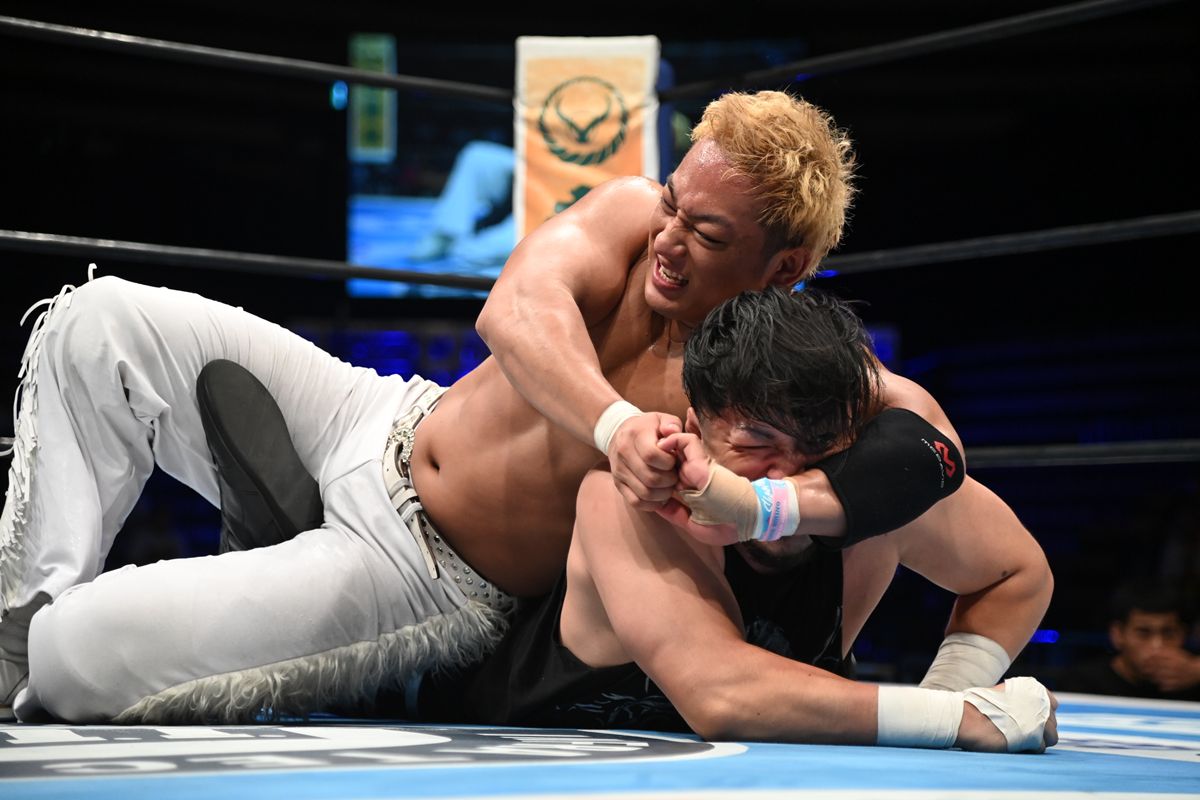 セミファイナルのBブロック公式戦で、海野翔太と成田蓮による因縁の同期対決が実現。HOUSE OF TORTURE(H.O.T.)の非情な介入殺法の前に海野が沈み、成田がG1初勝利を強奪した。