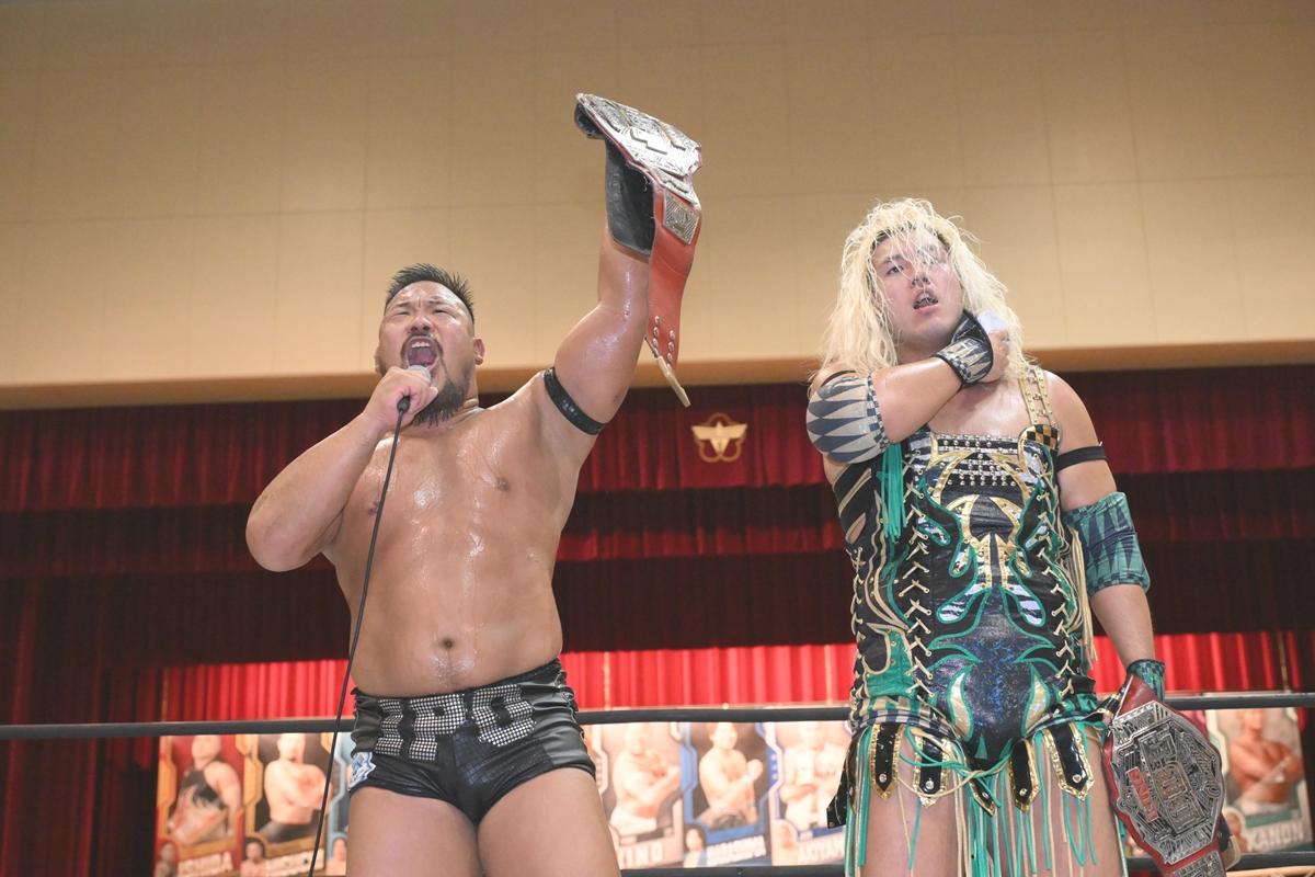 【DDT】飯野雄貴&納谷幸男が秋山準&佐藤大地との激闘制し、KO-Dタッグ王座初V!8・30ひがしんで佐々木大輔&岡谷英樹が挑戦
