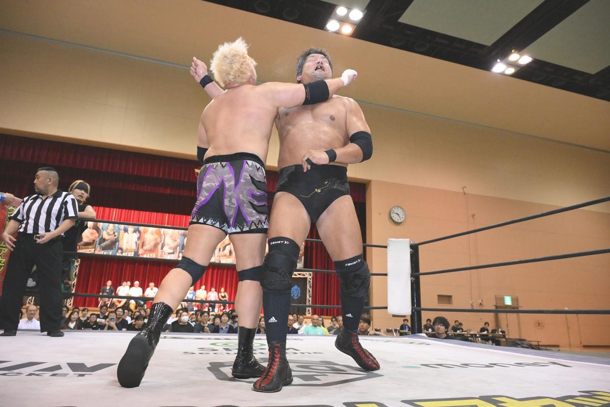 <王者組>飯野雄貴&○納谷幸男 vs 秋山準&佐藤大地●<挑戦者組>