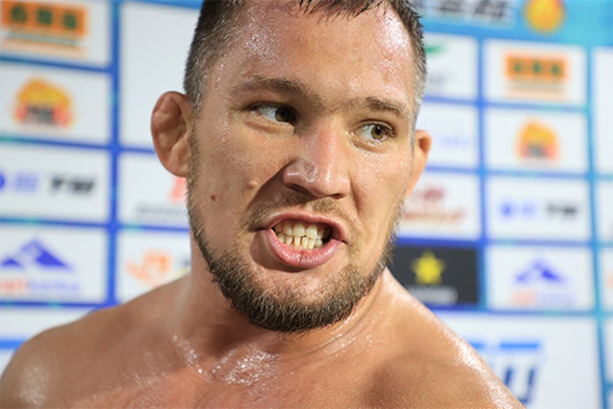 ゴング前からリング中央で睨み合うボルチンとフィンレー。試合が始まると、ボルチンがその規格外のパワーでフィンレーを圧倒。ショルダータックルの打ち合いでもびくともせず、逆にフィンレーを吹き飛ばしてみせる。