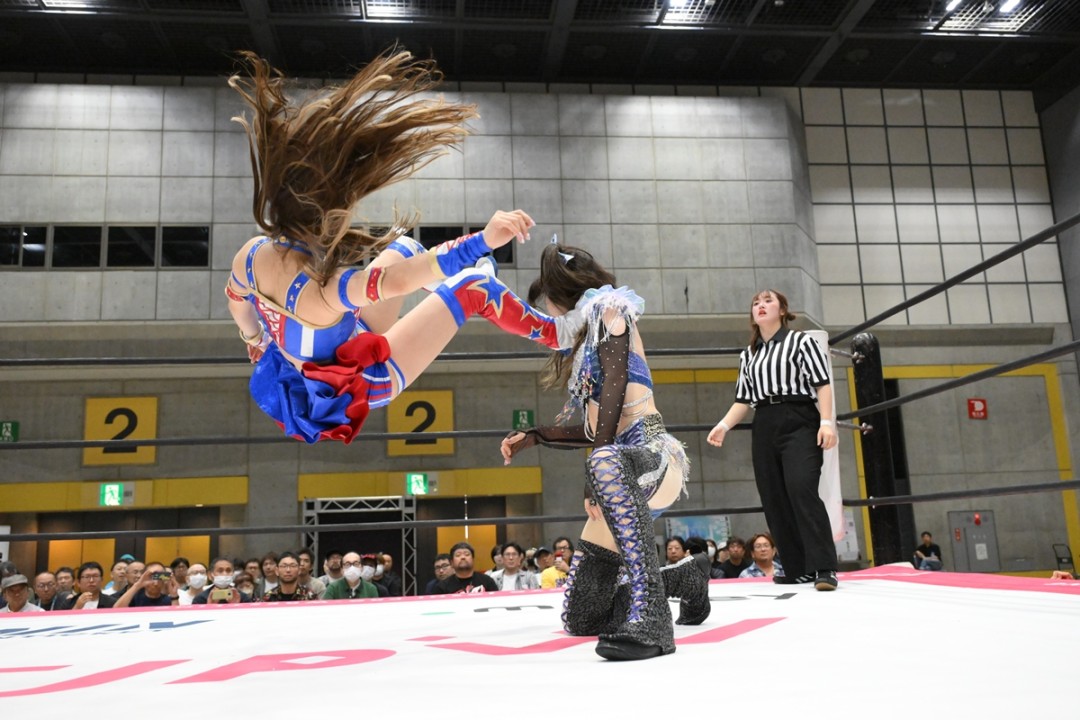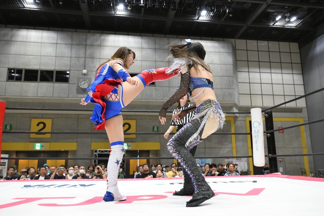 東京女子プロレスが8月2日、静岡・アクトシティ浜松展示イベントホールで夏のシングルトーナメント「東京プリンセスカップ」1回戦を開催した。初優勝を目指す荒井優希は“難敵”上福ゆきから豪快勝利を挙げ、1回戦を突破。荒井は9日、東京・品川ザ・グランド・ホールでの準々決勝で上原わかなと対戦する。