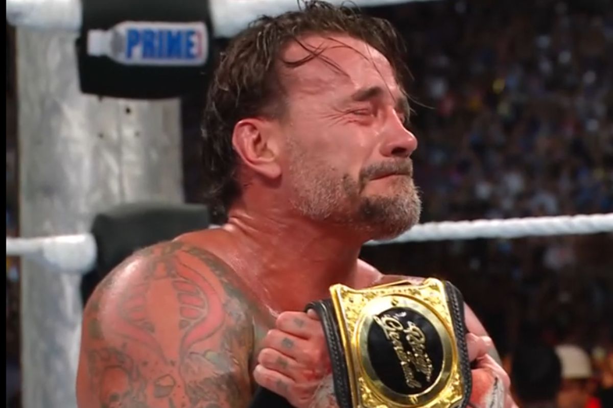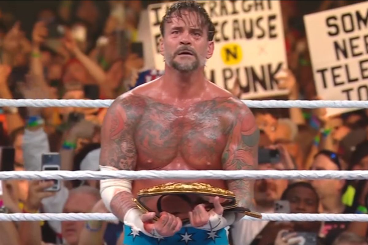 12年半ぶりに最高峰のベルトをその腰に巻いたパンクは、リング上で涙を流し、5万人を超える大観衆とその喜びを分かち合った。