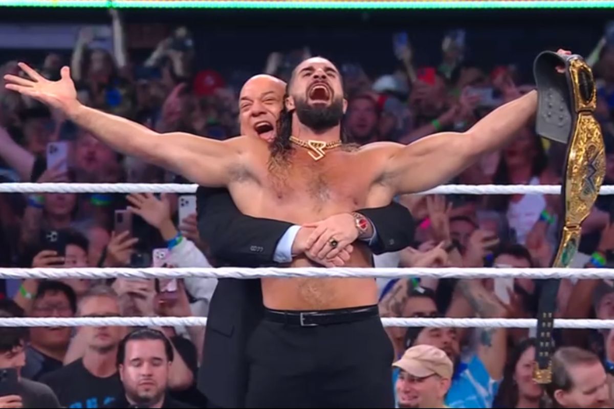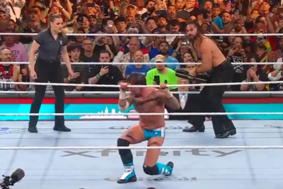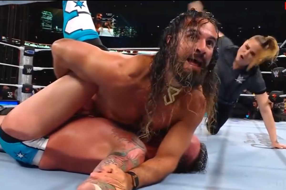 一度は引き下がるかと思われたが、次の瞬間、ロリンズは松葉杖と膝の固定具を投げ捨て、リングへ疾走。その負傷が、すべてはこの日のための策略であったことを証明した。