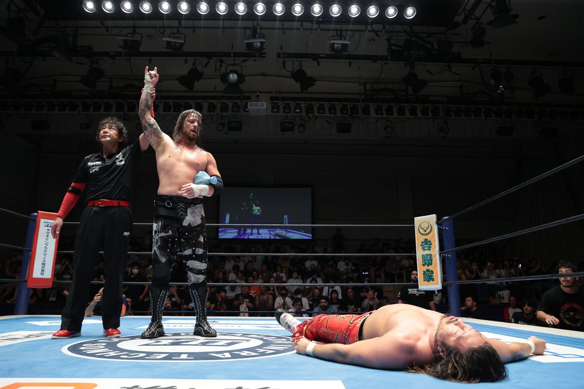 【新日本】デビッド・フィンレーが崖っぷちから意地の勝利!辻陽太を撃破し望みを繋ぐ「お前らは『G1 CLIMAX』史上最高のカムバックを目にしているのだ」
