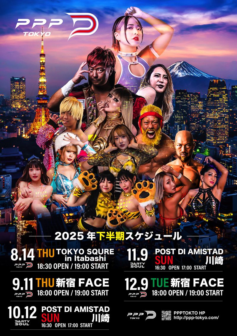 PPPTOKYOは、下半期のスケジュールを発表するとともに、次回の公演となる8月14日(火)板橋公演「ファン感謝祭 SUMMER NIGHT PASSHION 2025」の全対戦カードを公開した。