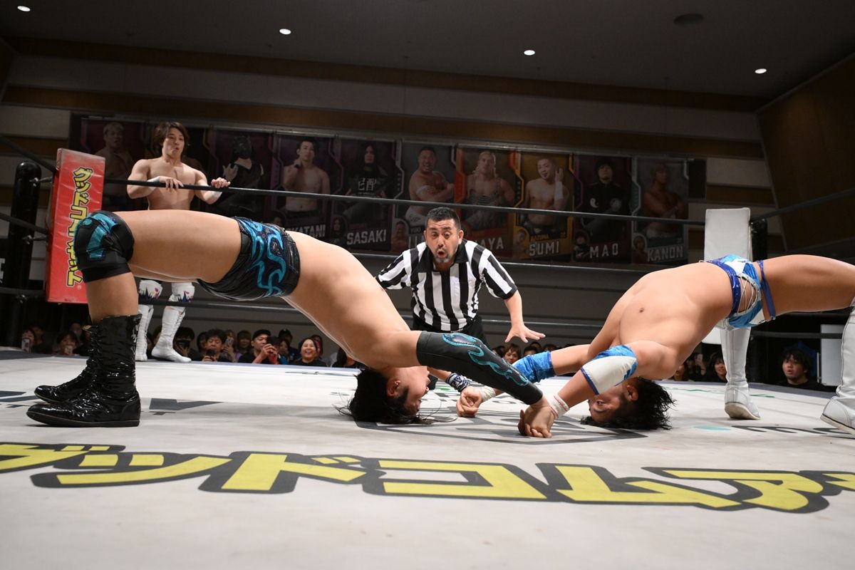 また、この日、KO-D無差別級王座への挑戦権が獲得できる「いつでもどこでも挑戦権」の争奪戦がスタート。3WAYマッチで男色ディーノ、スーパー・ササダンゴ・マシン、平田一喜が対戦するも、3者とも、それぞれオトナの事情で獲得に気が向かない様子。