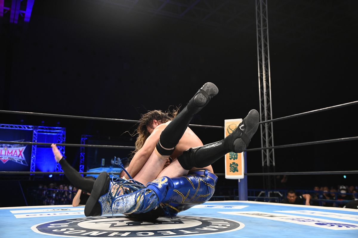 最後は、ニューマンがダメージで崩れ落ちた一瞬の隙を突き、辻が旋回式のセブンティークロスを決め、激闘に終止符。