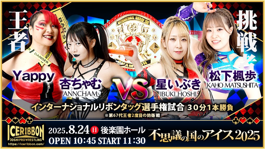 女子プロレス団体・アイスリボンは、8月24日(日)後楽園ホール大会「不思議の国のアイス2025」追加決定カードを発表した。
