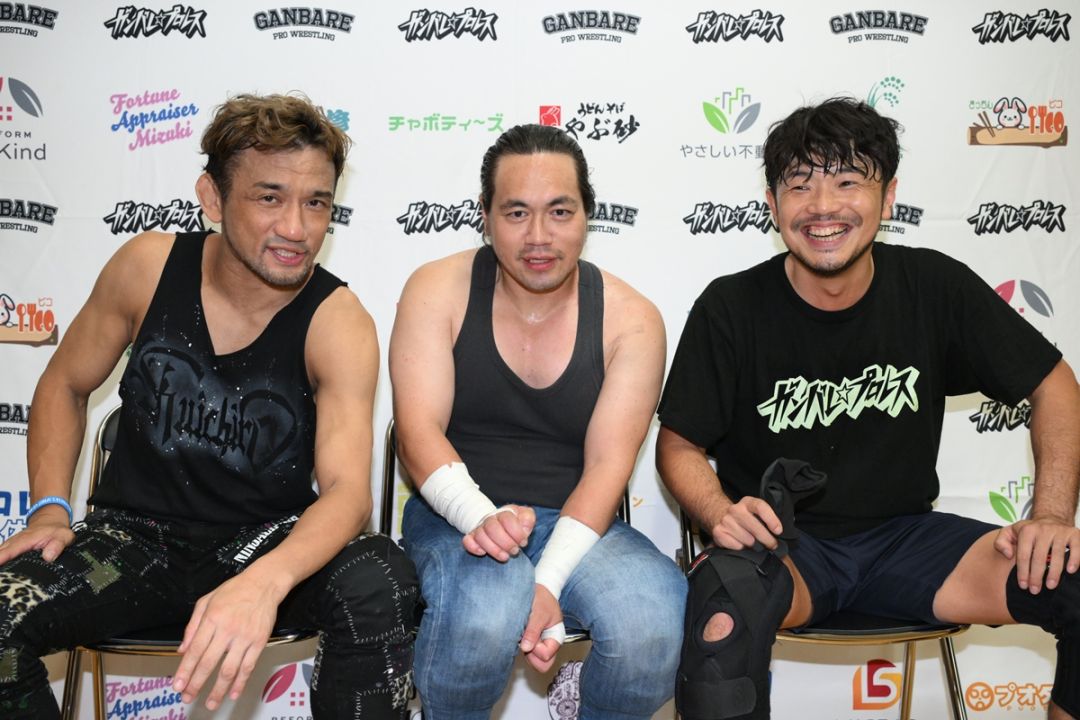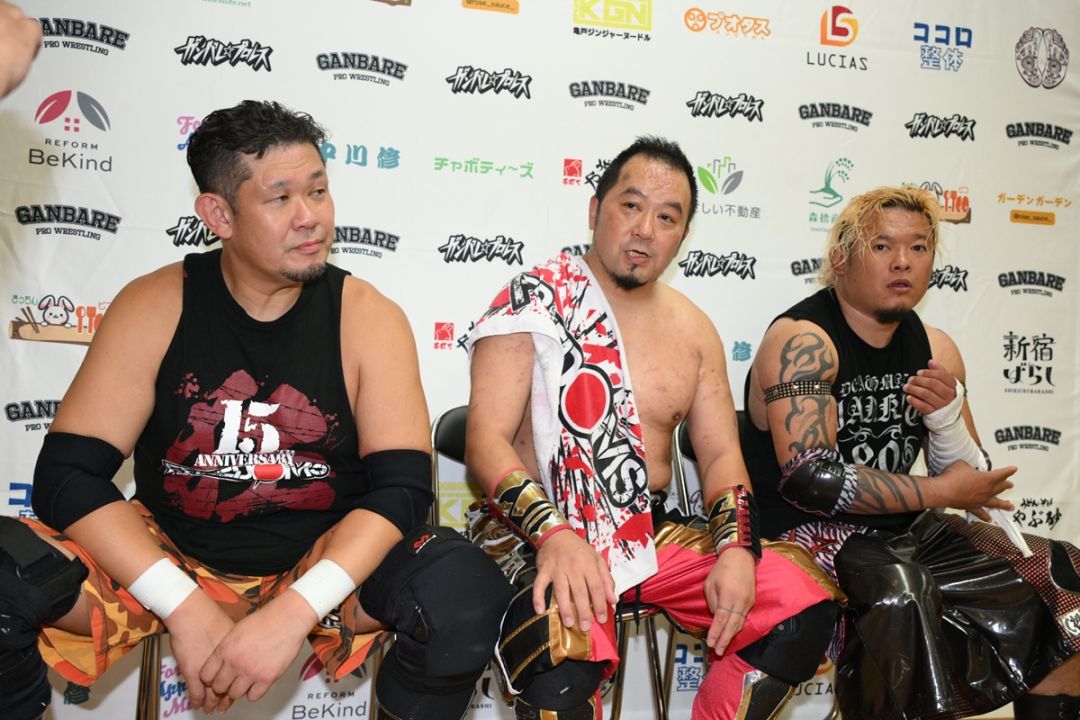 試合後、後楽園でのFREEDOMSとの対抗戦に臨む勝村は「今日のメインでFREEDOMSから素晴らしい3人が来てくれて。後楽園でFREEDOMSを迎え撃つんで。負けてられないという気持ちが強くなりました。この3人でガンプロを代表して戦いたいと思います」と、冨永は「我々ベテラン、中堅でトリオを組んで、ホームで負けるわけにはいかない」と話した。
