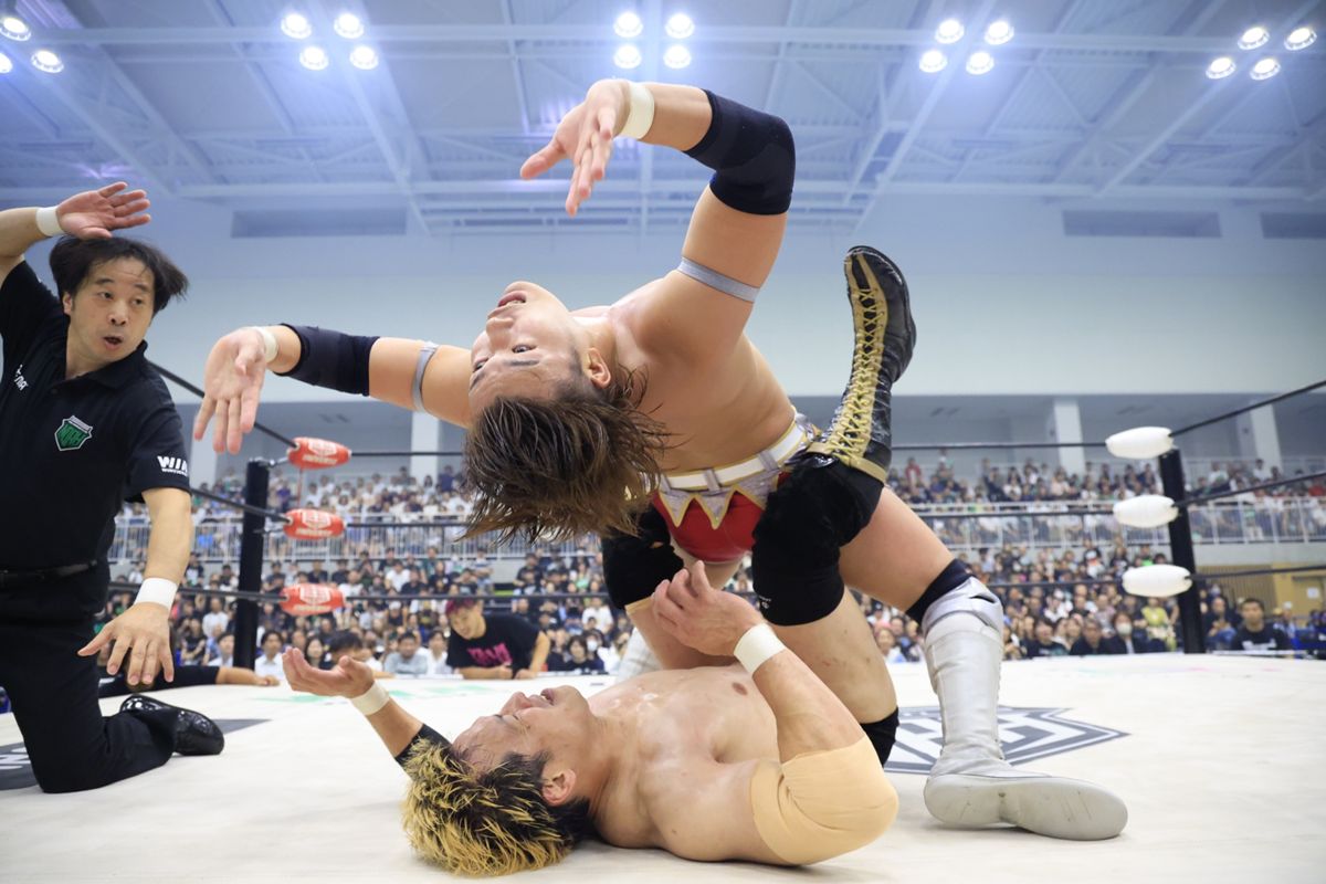 終盤、二発目の豪腕ラリアートで勝負を決めにいったところを、晴斗希にカウンターのハイキックで迎撃され、ジャーマンスープレックスの前に沈んだ。