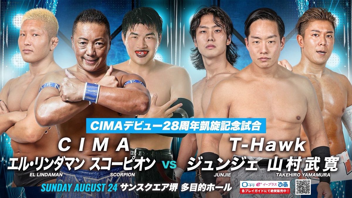 記念大会のメインイベントには、CIMA、エル・リンダマン、スコーピオン組と、T-Hawk、山村武寛、ジュンジェ組によるスペシャル6人タッグマッチが組まれる。この豪華な顔合わせで、CIMAのデビュー28周年という大きな節目を盛大に祝う。