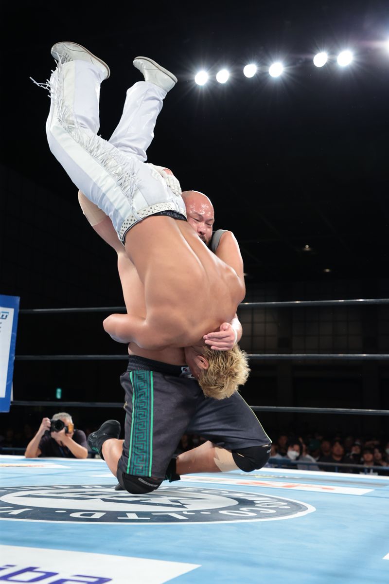 最後は、オーカーンが必殺のポップアップ式エリミネーターで勝利に王手をかけたが、これを執念でキックアウトした海野が、とどめのエリミネーターを切り返すと、渾身の力を込めて必殺のSecond Chapterを完璧に決め、3度目の対決にして、最も重要な一戦を制した。