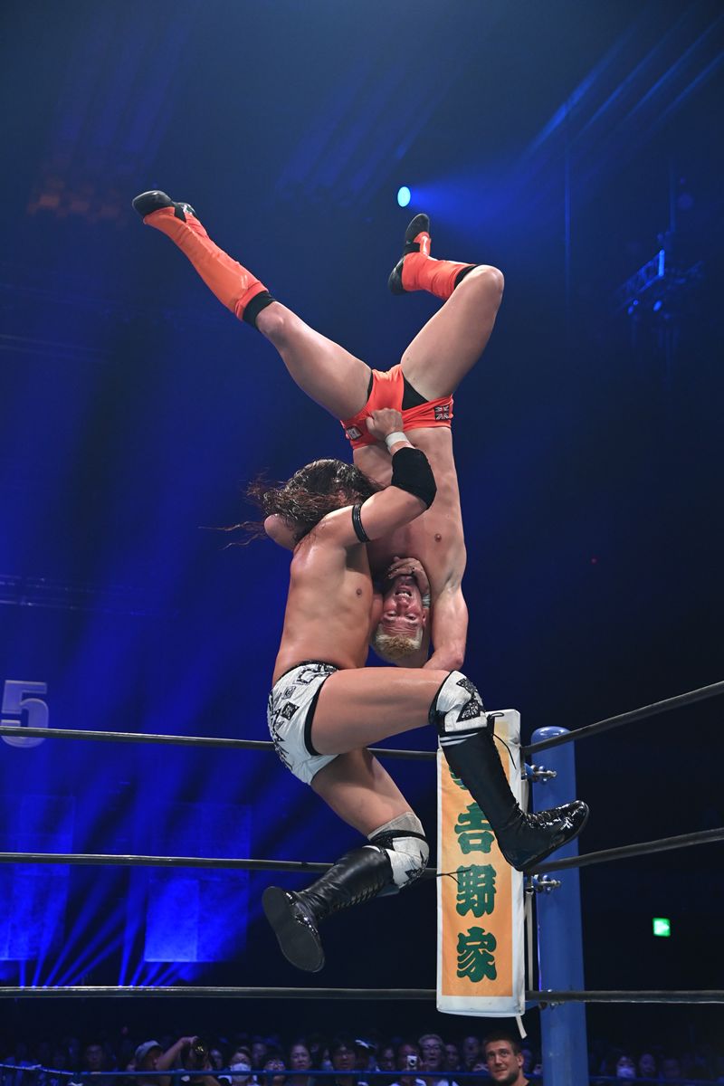 ザックが変幻自在の関節技でTAKESHITAの腕を破壊しにかかれば、TAKESHITAも断崖式のDDTやジャーマンスープレックスで応戦。