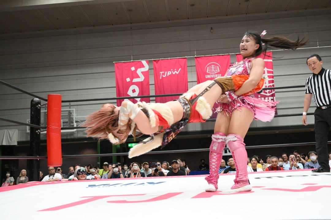 東京女子プロレスが8月17日、エディオンアリーナ大阪第2競技場で夏のシングルトーナメント「東京プリンセスカップ」準決勝を開催した。渡辺未詩が中島翔子との死闘を制し、3年ぶりの決勝進出を決めた。決勝戦(8月23日、後楽園ホール)は、準決勝で荒井優希を下した遠藤有栖との新世代対決となる。