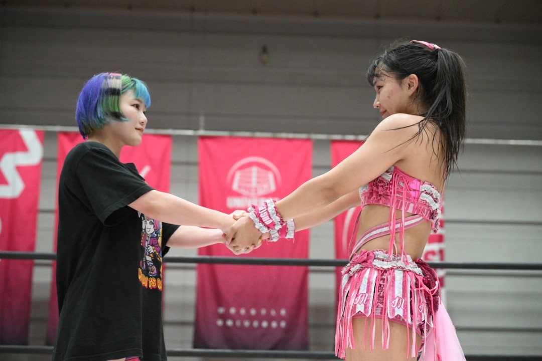 リングに上がった遠藤が「未詩さん、かっこよかった!でも、やっと私もここまで来たんだ。東京女子プロレスに来て、初めて一番になれるチャンスが来た。私が勝って、夏一番の女になります!」と言えば、渡辺は「有栖も1回戦、2回戦、すごいかっこよかったよ。今年の夏の有栖はどれくらい強くなってるのか、1週間後が楽しみです。うちら2人で2025年、東京女子、最高の夏にしましょう!」と応じ、握手を交わした。